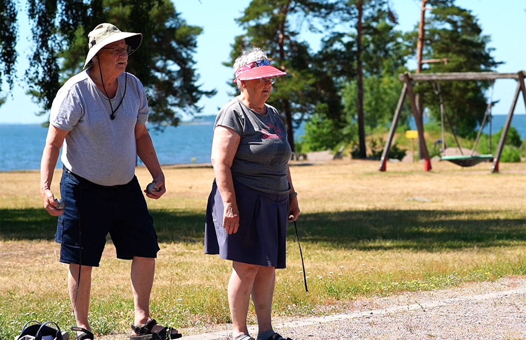 Hans och Ann ägnar gärna en stund på dagen åt Boule vid Otterbäckens camping.